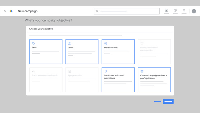 Note: Performance Max will show as a campaign type selection if your advertising objective is �Sales�, �Leads�, or �Local store visits and promotions